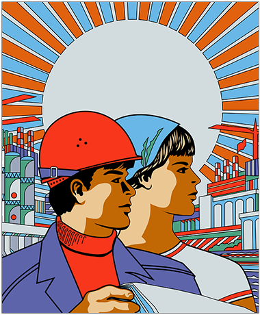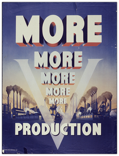 Mit der industriellen Revolution und dem technischen Fortschritt intensivieren sich die Produktionsbemühungen deutlich. In den kommunistischen Ländern wie im Westen, wo sich der Kapitalismus durchsetzt, wird die Produktionssteigerung als Weg des Glücks dargestellt.